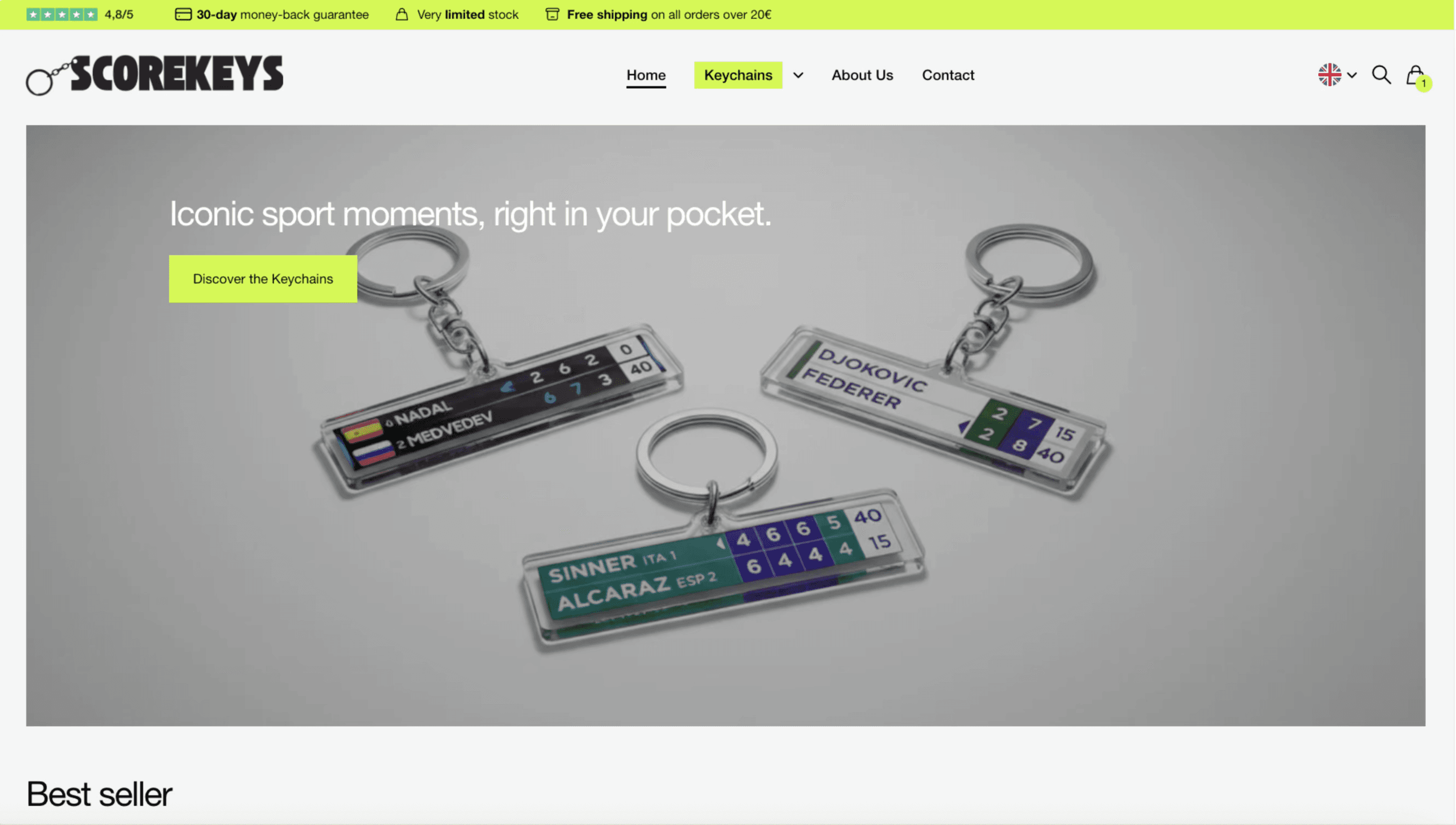 ScoreKeys s'est immédiatement positionné comme la marque "insider" des passionnés. La plateforme convertit grâce à une mécanique de "drop" et une forte dimension affective : on n'achète pas un porte-clés, on s'approprie un moment d'histoire. Nous avons réussi à créer une valeur perçue très élevée autour d'un produit simple, fidélisant une communauté de collectionneurs qui attendent chaque sortie comme une nouvelle victoire.